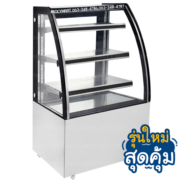 ตู้แช่โชว์เค้กกระจกโค้ง (สีดำ) หน้ากว้าง 90 ซม.