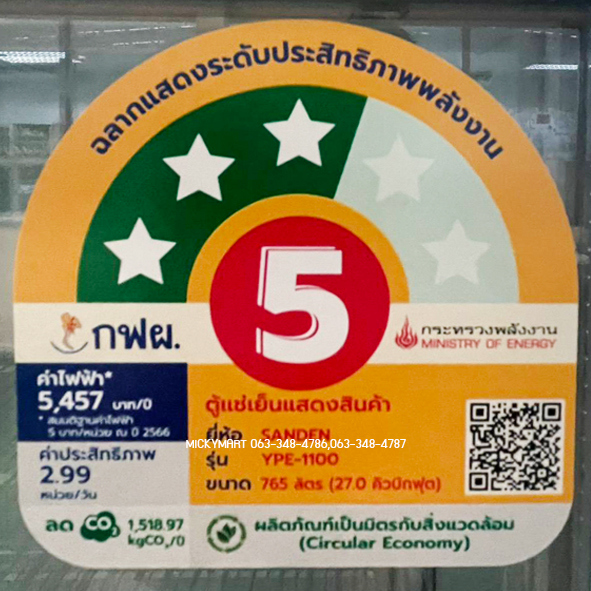 ลักษณะ : ตู้แช่เย็น 2 ประตู ประหยัดไฟเบอร์ 5 3 ดาว