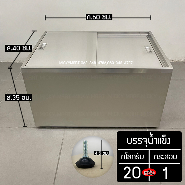 | ลักษณะ : | ถังน้ำแข็งสแตนเลสบานสไลด์ 40 ลิตร |